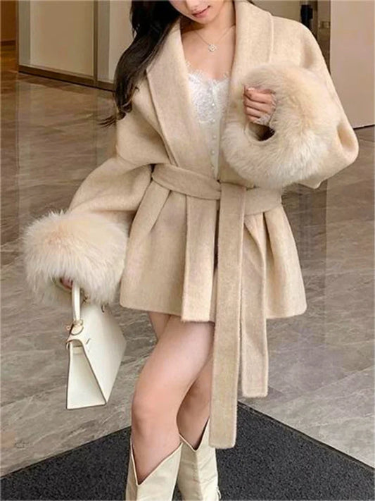 100% Wool Fur Trim Long Sleeve Coat