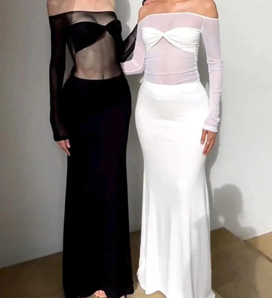 Regular price $60.00Regular priceUnit price / perSale price $60.00blackblack dressbodyconlong sleevemaximaxi dressmeshnewnew insheersummerSummer knitwhitewhite dress -
