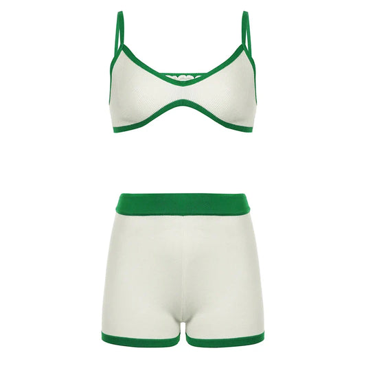 Contrast Color Knit Bra & Shorts Two Piece Set