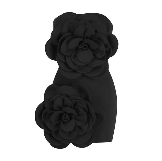 Luxe 3D Strapless Flower Design Elegant Mini Dress