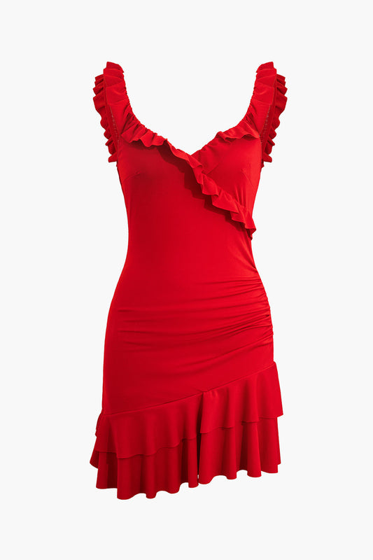 Mini Ruffle Ruched Sleeveless Bodycon Dress