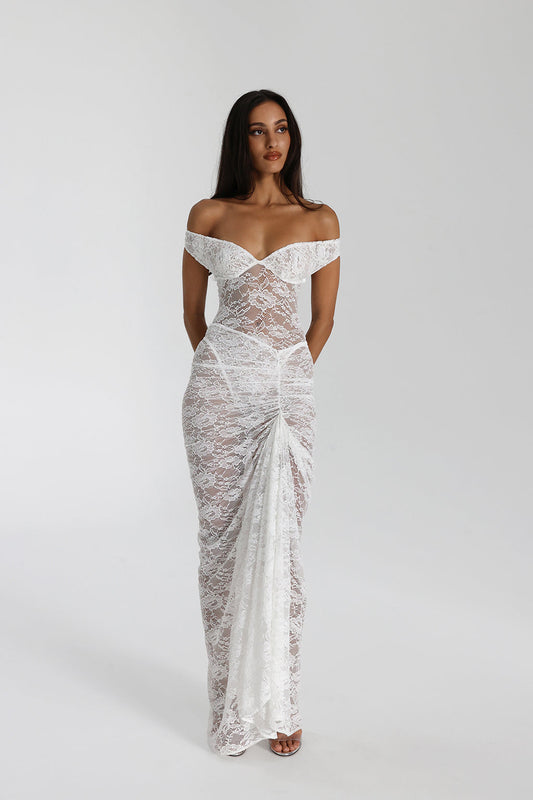 Selune - See-Through Lace Off-Shoulder Maxi Dress
