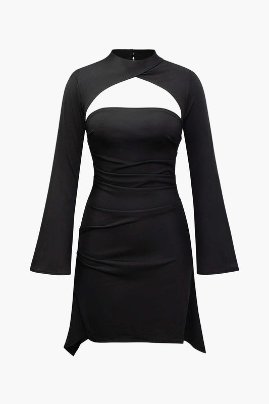 Cutout Ruched Long Sleeve Flare Mini Dress