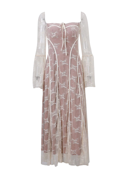 Luxe Vintage Square Collar Lace Long Sleeve Maxi Dress