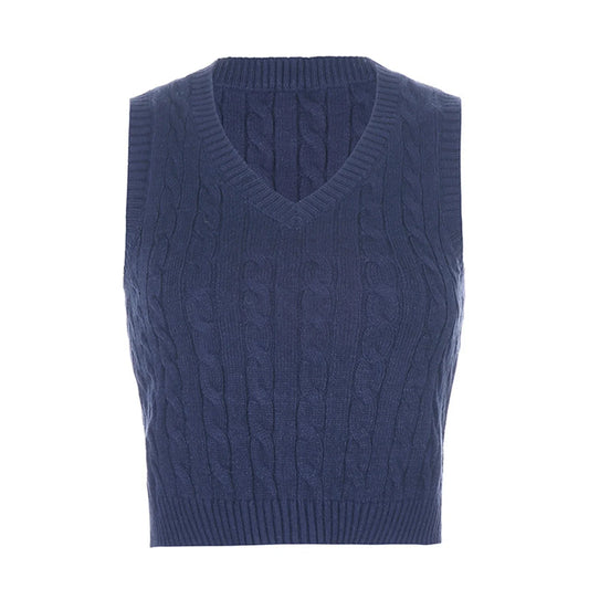 Sweater V-Neck Retro Style Sleeveless Pullover