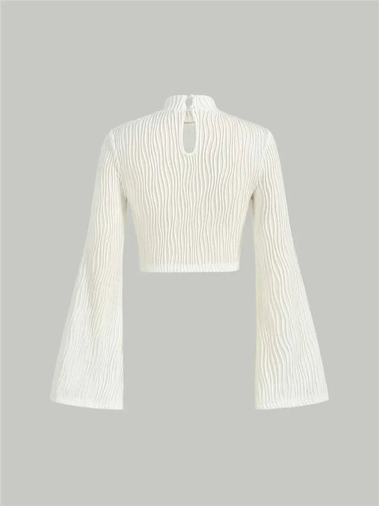 Textured Flare Long Sleeve Crop Top
