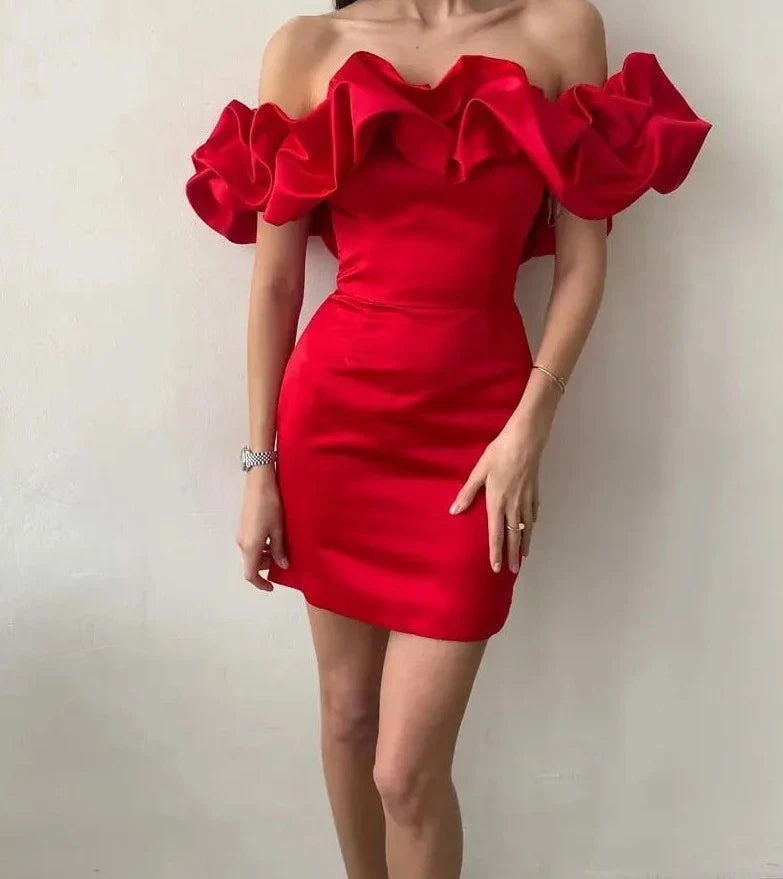 Vintage Ruffle mini dress, ruffled off the shoulder ,wedding guest dinner party special occasion statement dress Crafted with an eye-catching ruffled off-the-shoulder neckline, this mini dress is a couture statement for wedding guests, dinner parties, and any special occasion. Elevate any look with luxury and grace. This mini dress is designed to make an instant impression. Its luxe off-the-shoulder ruffle brings a sense of sophistication and grace to any wedding guest, dinner party ensemble or special occasion. Step out in timeless elegance and statement-making style.