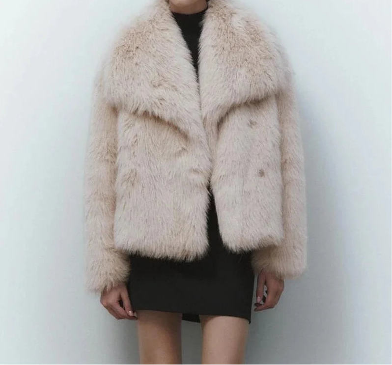 This faux fur features a full pelt, covered button closure, and regular sleeve style. The material is faux fur and the fabric type is a luxurious blend of polyester and cotton. The coat is designed with thick, warm fur and a regular length for practicality. Perfect for chilly autumn and winter days, this vintage-inspired coat is a must-have in any stylish woman's wardrobe. Achieve a sophisticated look with the styled up design and candy-colored fur. This coat is part of our autumn 2024 collection and is perfect for elevating any outfit.