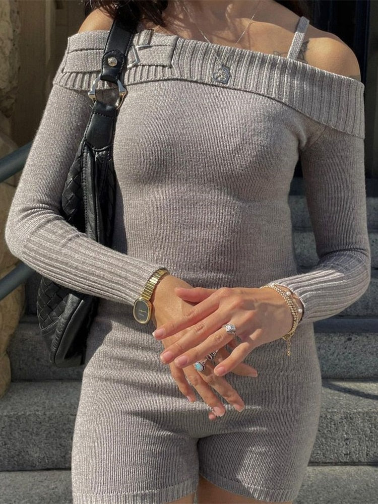 Feel comfy and stylish in this Aries Knit Off-Shoulder Playsuit! Crafted from cotton blended fabric with medium stretch, this knitted playsuit is perfect for all your fashion needs. Experience the fashionable versatility and comfort today!
