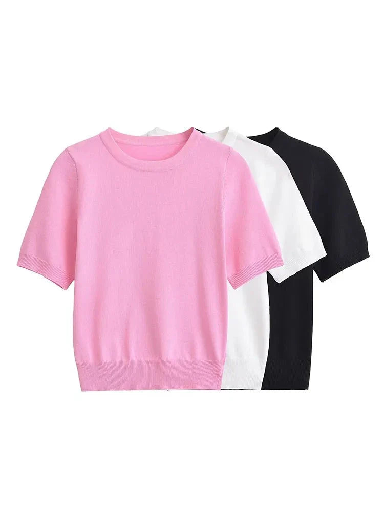 Take on the challenge with this bold Basics Casual Knitted Sweater Top featuring a solid pattern, slim fit, and short sleeves. Perfect for the risk-taker in you, this top is designed with a slight stretch and made of polyester knit fabric for a standard thickness and regular yarn. Its O-neck collar and lack of closure add to its effortless style, making it a must-have for the upcoming Spring/Summer season. Get ready to show off your adventurous spirit in this release date of Spring 2024.
