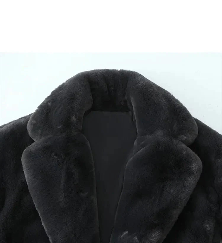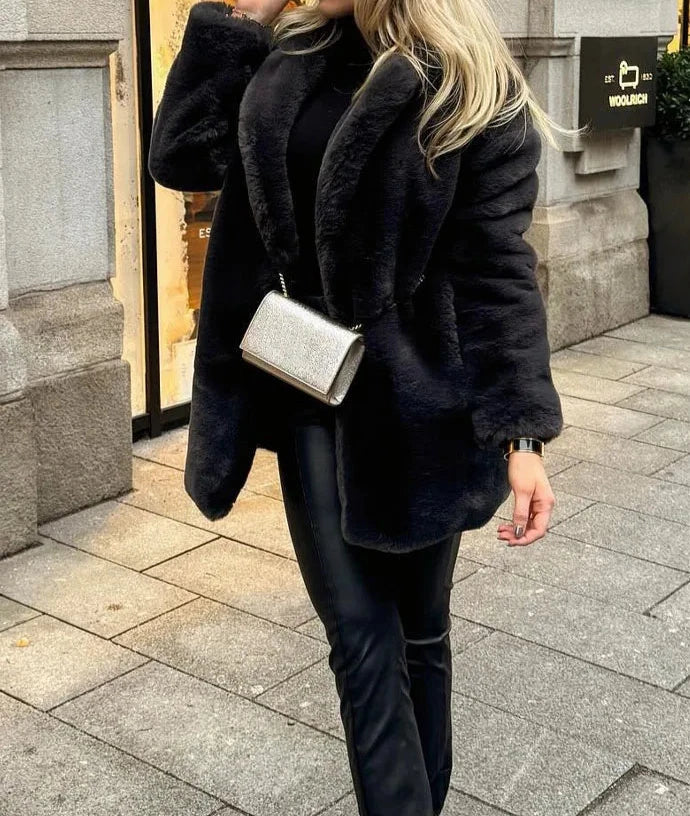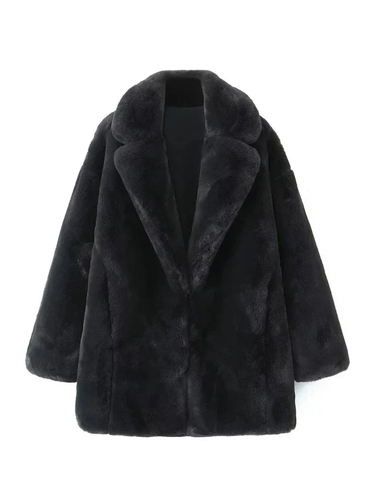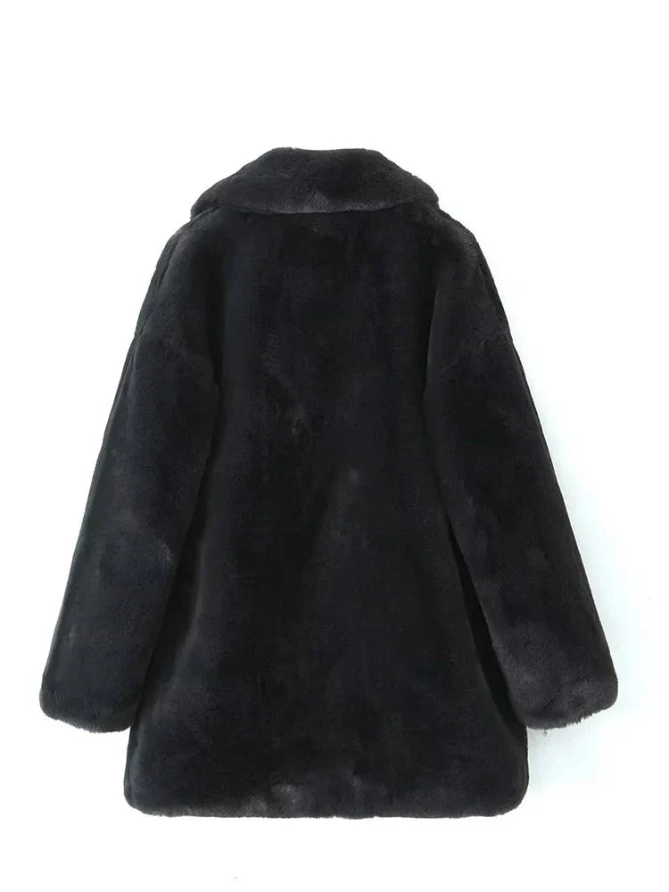 Indulge in the luxurious elegance of the Black Soea Faux Fur Long Sleeve Coat. Featuring tasteful embellishments such as sophisticated buttons, practical pockets, and a turn-down collar, this coat exudes effortless chic with its open stitch closure. Experience opulence and style with every wear.
