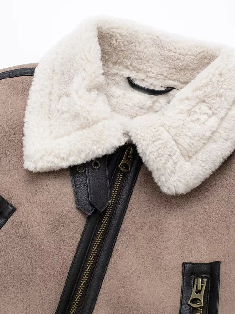 HDman December 28, 2022Verified BuyercuteI read one of the reviews who was slightly taller but weighed in at a larger number who was happy with a small. I am shorter but I have a larger chest so a small would not have worked for me. The medium has a double zipper. When I zip both up, the coat then is snug on my chest.Its cute when both zippers are zipped but then again, I bought it for the many shiny stuff on it such as the double zipper, so I want to leave them visible. Its nice and supple feeling.Collared Faux Fur Shearling Front Zipper Jacket Was this helpful? 0 0