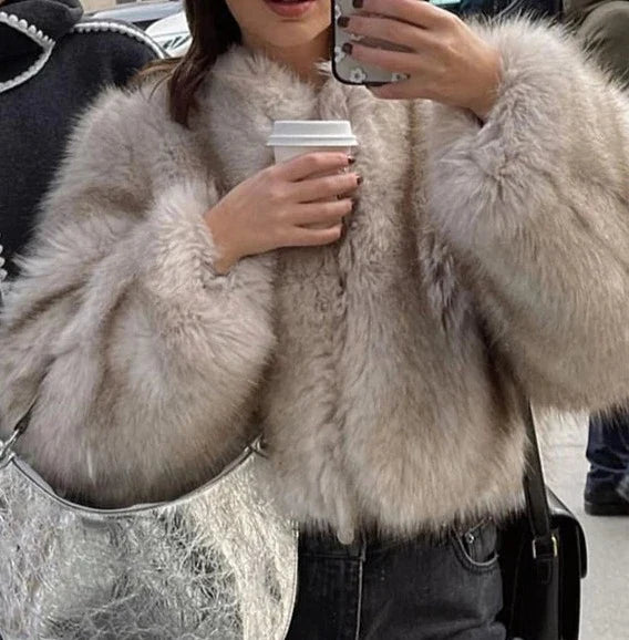 Rock the Eski Fur Iconic Luxury Coat. Feel the plushness of the faux fur, the warmth of winter, and the adventure of the pockets. Wear the O-neck, covered button closure with courage, and feel the rush of fashion risk-taking. Live luxuriously and take flight!