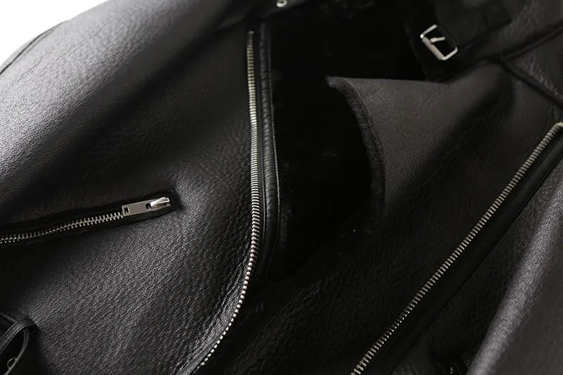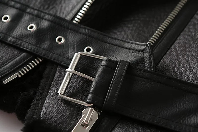 Indulge in the luxurious warmth and style of the Faux Fur Lined Aviator jacket, with its extra thick and plush faux fur lining. This premium rider jacket boasts decorative pockets and zippers, making it a true statement piece. Its substantial thickness makes it the perfect outerwear choice for cold weather. Upgrade your outerwear game with this one-of-a-kind jacket.