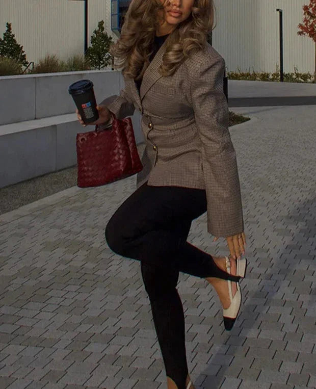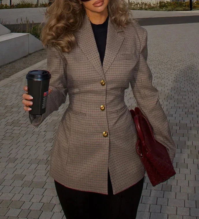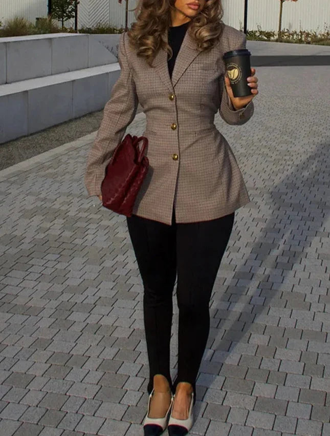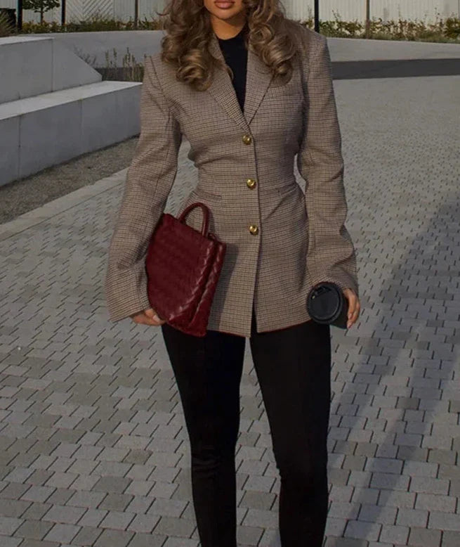Be bold and take the risk with the Imani Plaid Blazer Suit Coat! This vintage-inspired outerwear features a chic single-breasted design, complete with a turn-down collar and regular sleeves. Dare to make a statement in this stylish and versatile piece. Don't wait, add it to your wardrobe today!