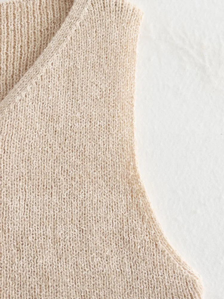 This Fashion Beige single breasted knitted vest tank top exudes a vintage ambience with its V-neck style and slight stretch fabric. Detailed with regular yarn and finished with a sleeveless silhouette, this chic top is sure to add a lavish flair to any wardrobe.