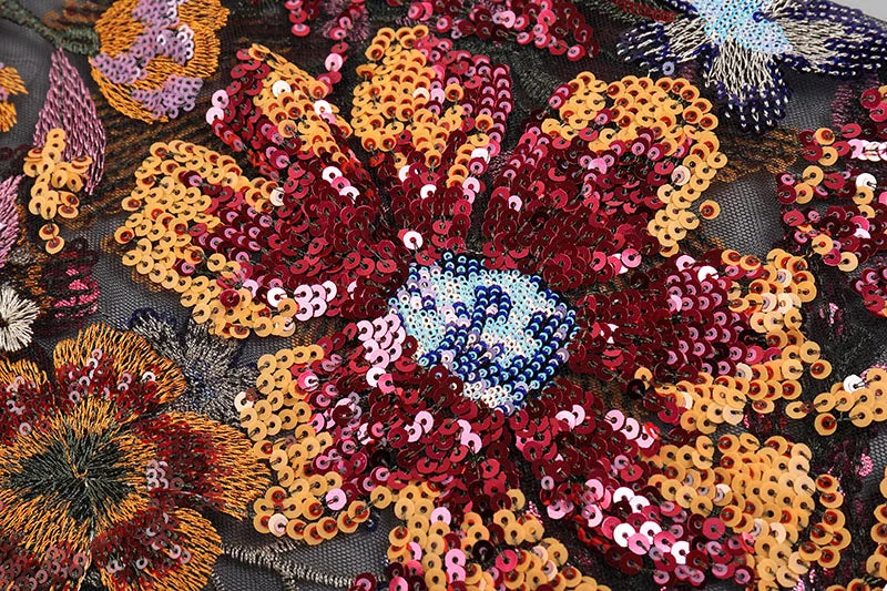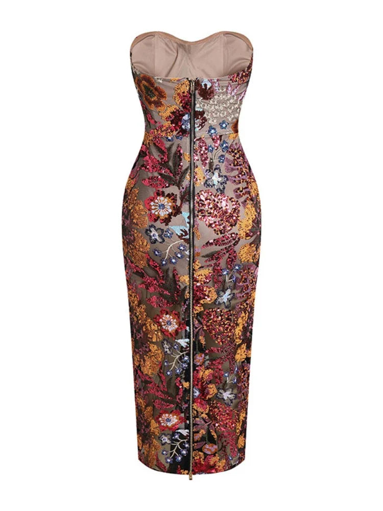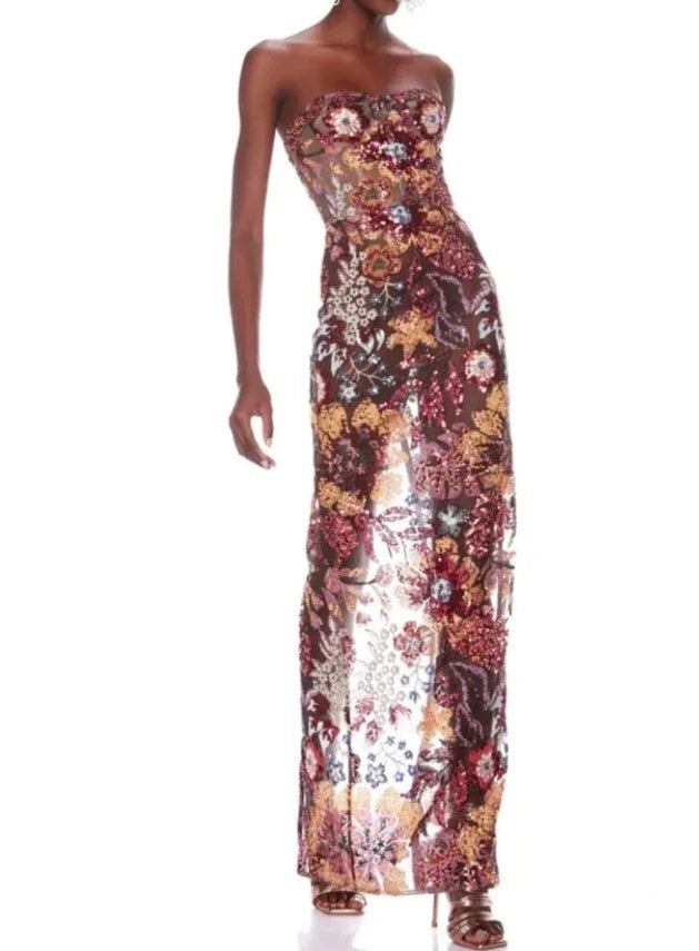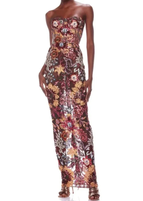 Luxe Strapless Handmade Floral Sequin Maxi Gown Dress
