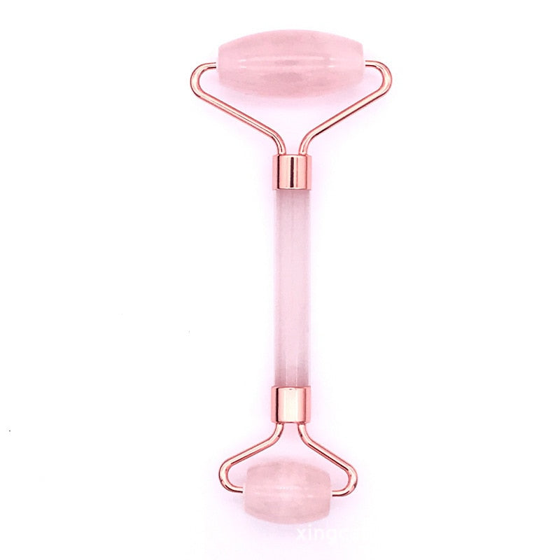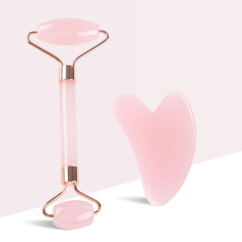 Pink Rose Quartz Jade Massager Roller Scraper Set
