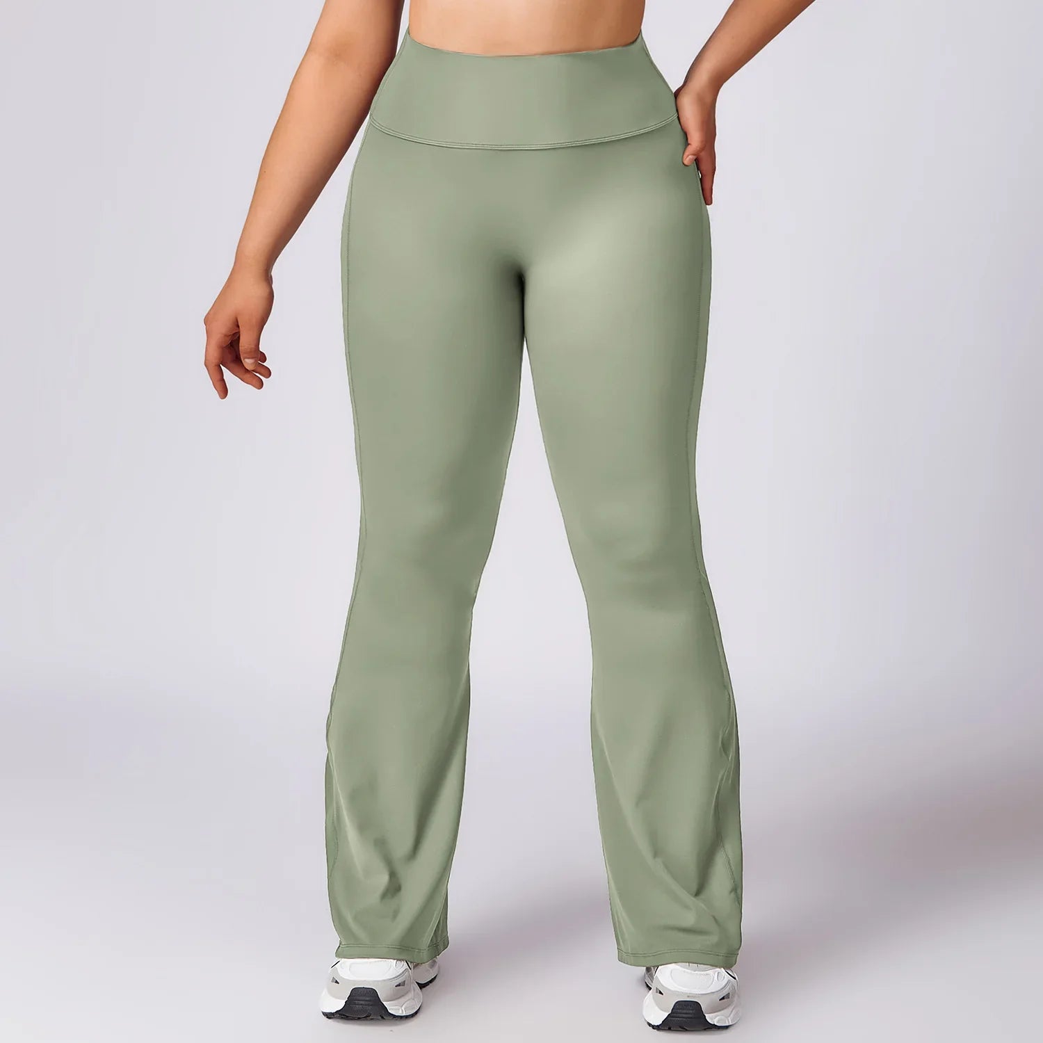These ProSculpt Plus Size Flare Leggings are perfect for any plus size woman looking for comfortable and stylish sportswear. The flared legs, high waist, and elastic waistband provide both support and breathability for your yoga or gym workouts. The solid color design comes in sizes XL, XXL, and XXXL, and the absorbent Nylon fabric makes them great for any season. Whether you're running, cycling, or hitting the gym, these full length leggings have got you covered.