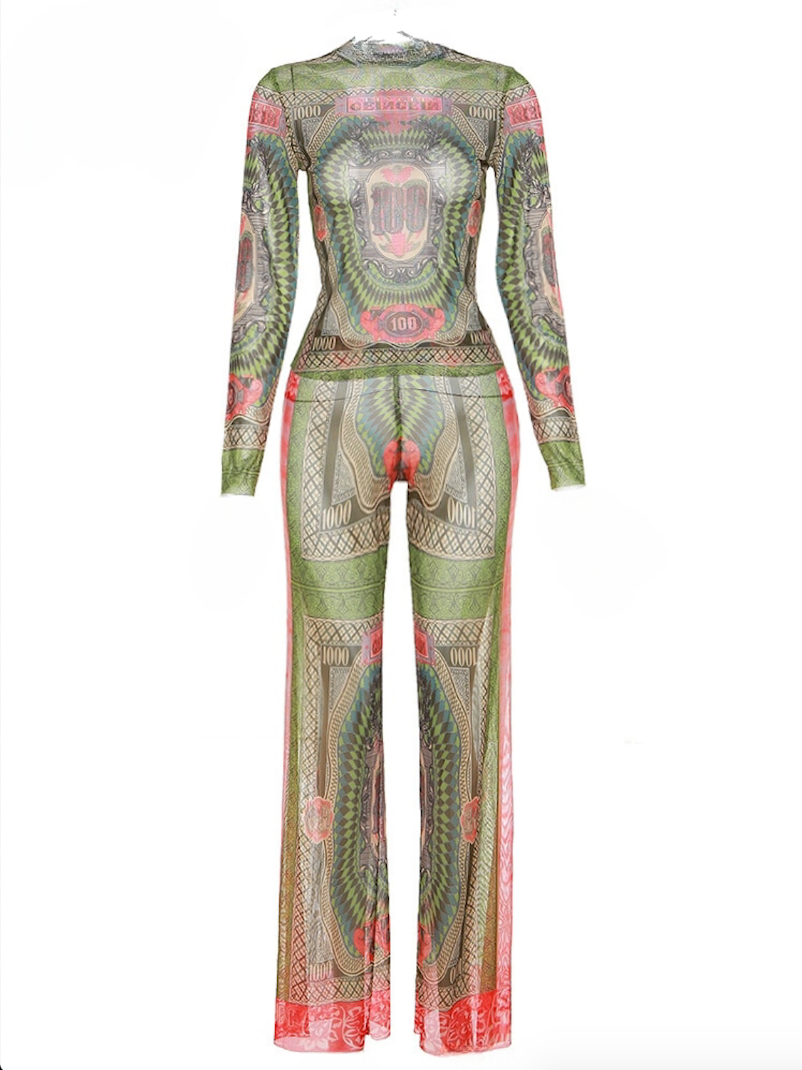 This sophisticated two-piece set from features a trendy mesh design with a long-sleeved top and trousers, making it an ideal selection for any special event. Its contemporary silhouette will surely turn heads.