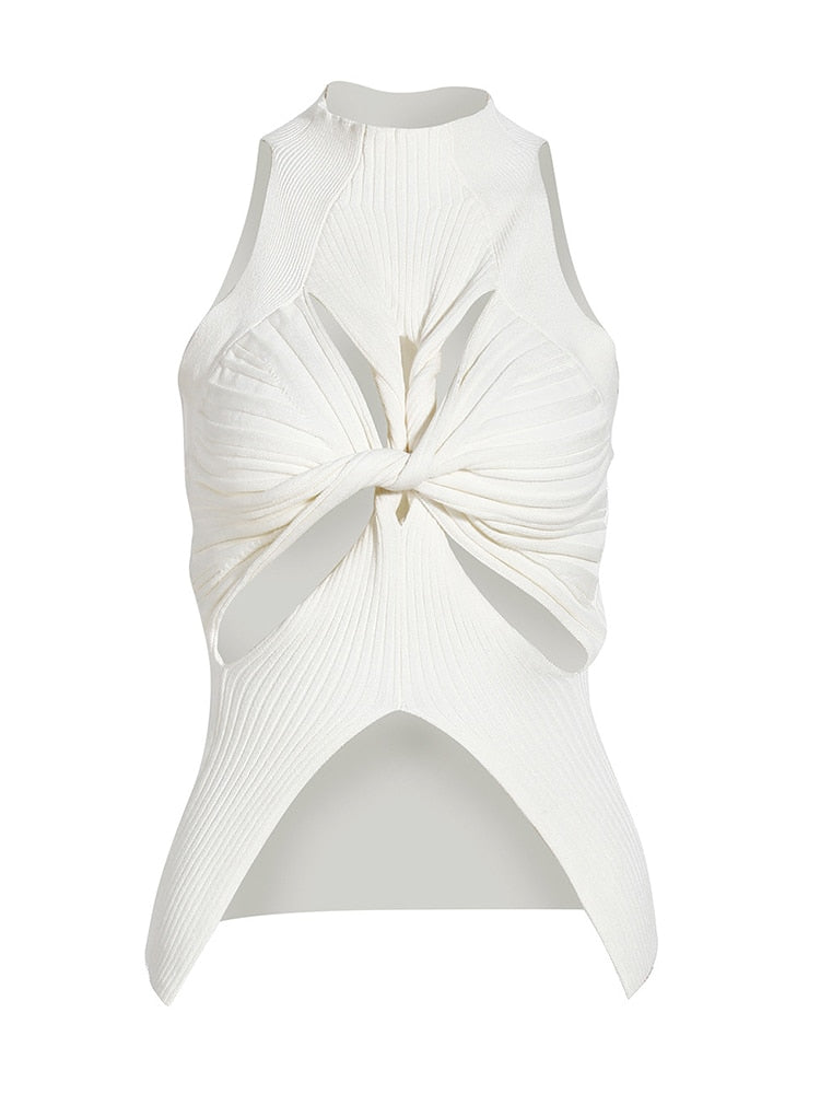 Express your individuality with this chic Twisted Cut Out Vest! Featuring a round collar and sleeveless design, this minimalist knitted vest adds a delightful touch of texture and character to your ensemble. Make a stylish effortless statement today!