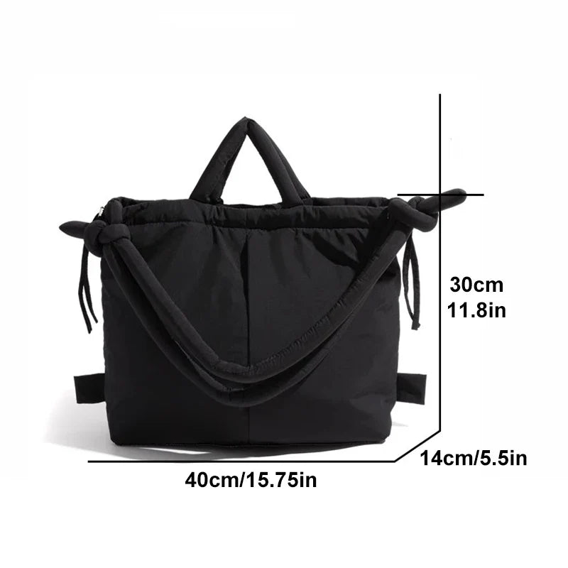 This versatile tote bag from is made of casual yet durable nylon, and features padding for added comfort. It can be easily transformed into a backpack or a crossbody bag, making it a practical choice for any occasion. The single strap design adds convenience and the spacious interior has pockets for both cell phones and small items, while the exterior has a silt pocket for easy access. With a supportive and approachable tone, this tote bag offers a stylish, functional solution for everyday use.