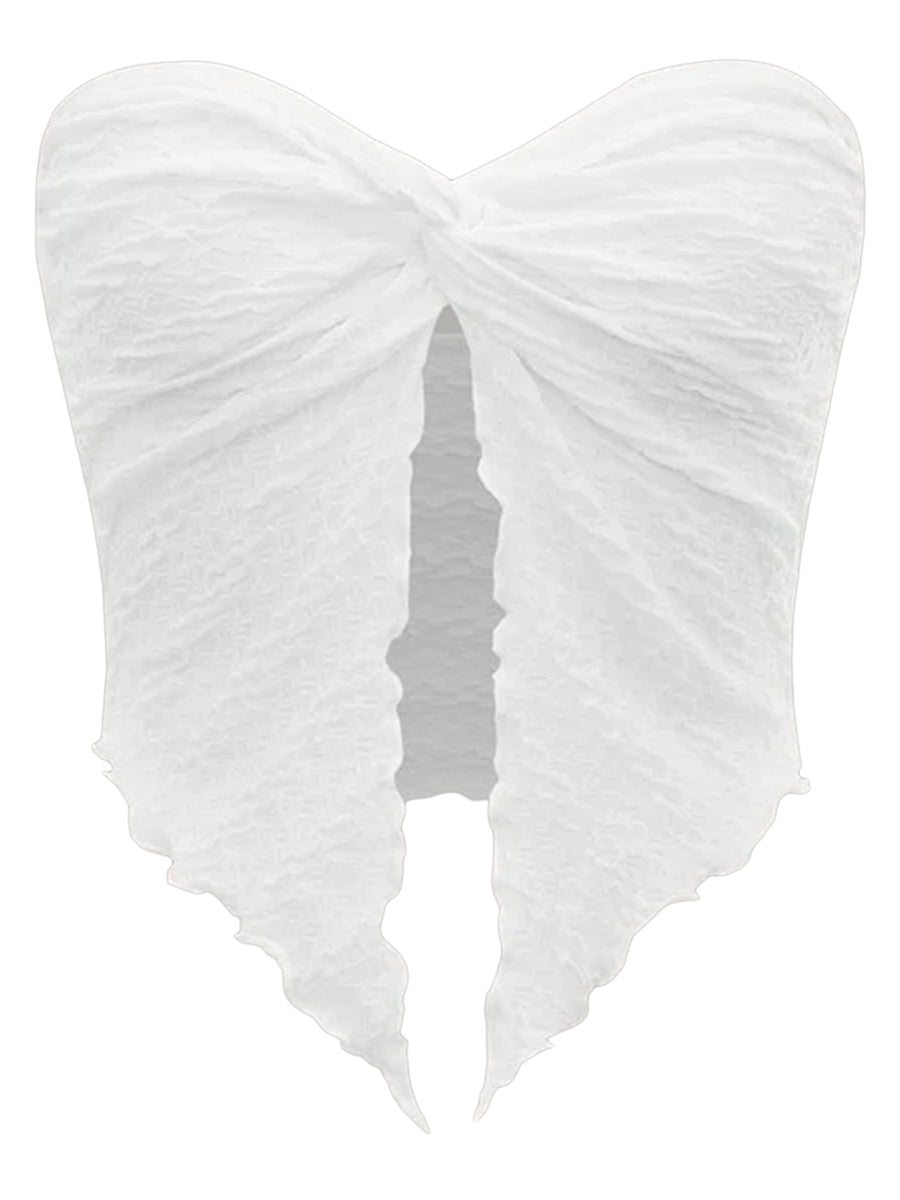 Aislyn Raymond June 10, 2024Verified BuyerPerfect for tanningThis bikini is so pretty in person and it was very minimal fabric which was what i was searching for. It’s super comfortable and perfect for a smaller chest. it’s super adjustable and the bottoms can be larger but the fabric makes them easy to scrunch as well. I love the triangle top and do wish the bottoms were a better fabric for the ocean but it’s very secure and did great in the water.Y2k Ruched Bandeau Crop Top Was this helpful? 0 0