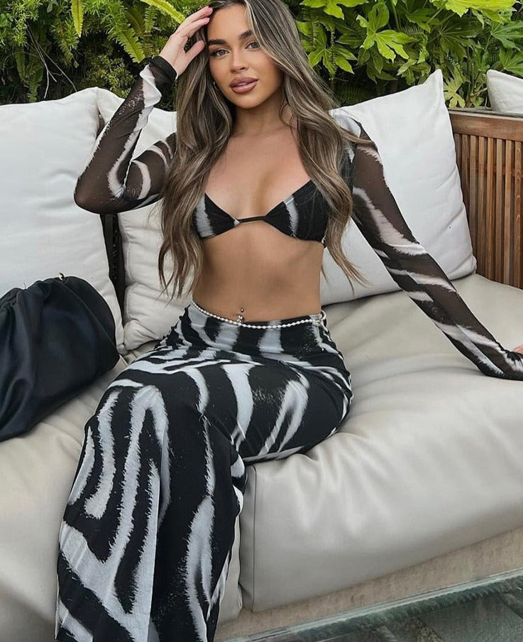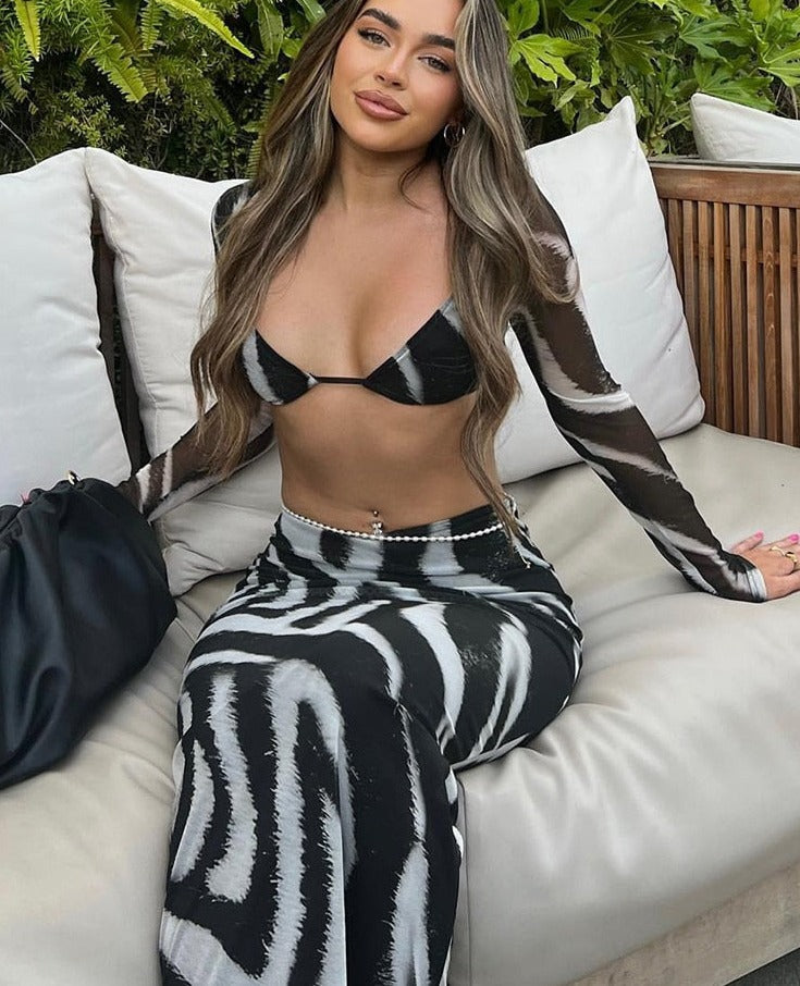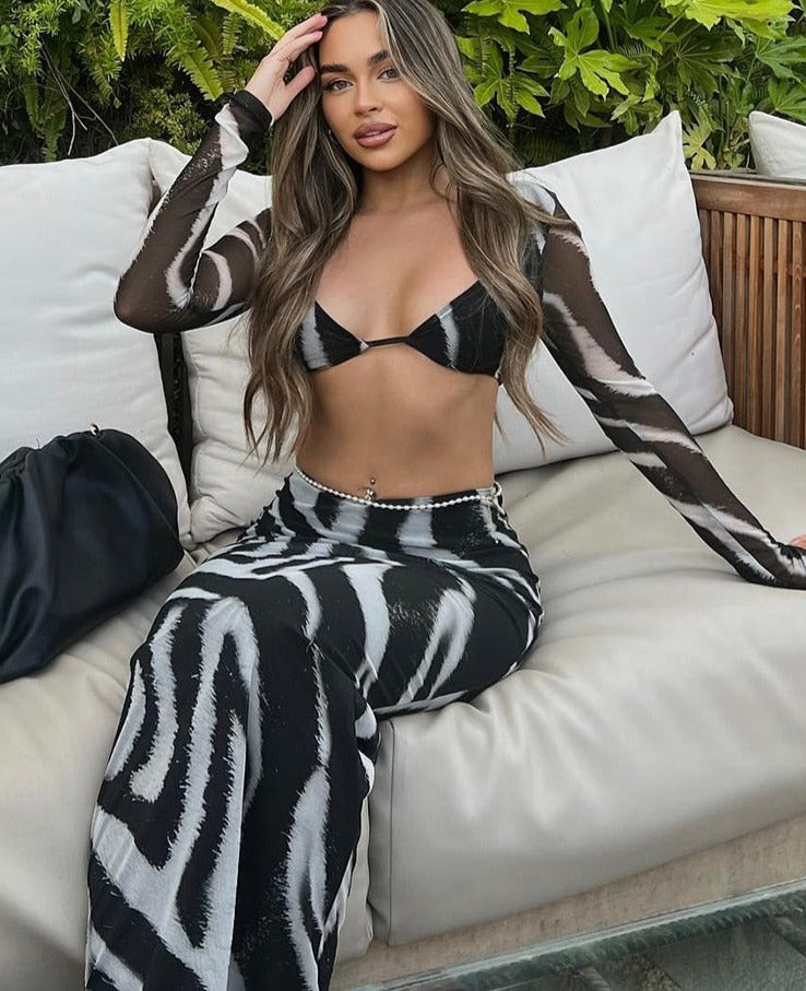 You'll be perfectly outfitted for any occasion with Zebra Stripe Two Piece maxi Skirt and long sleeve bralette Set. Its superior comfort and unrestricted range of motion make it a must-have for any wardrobe.