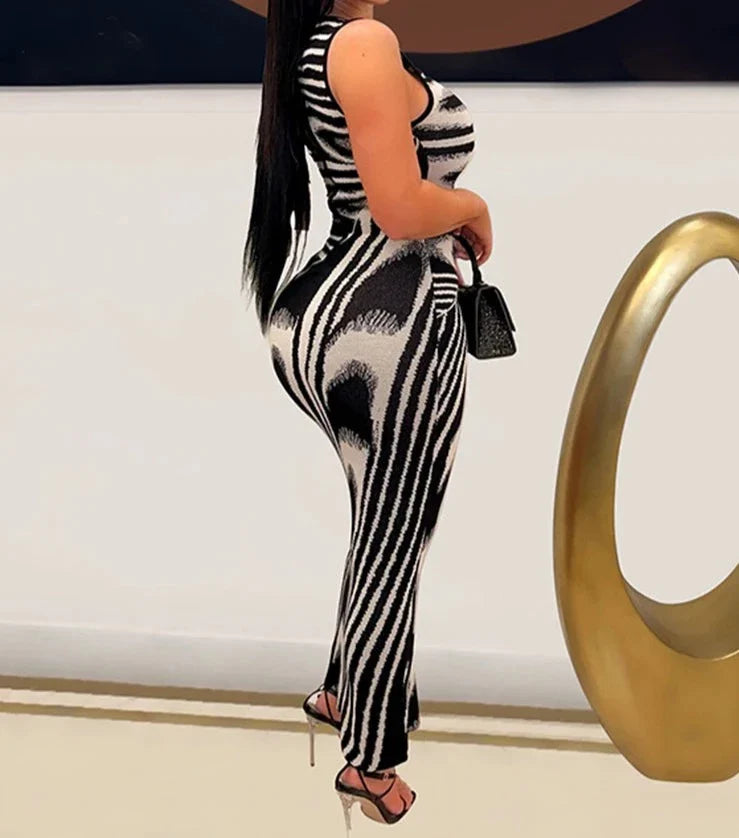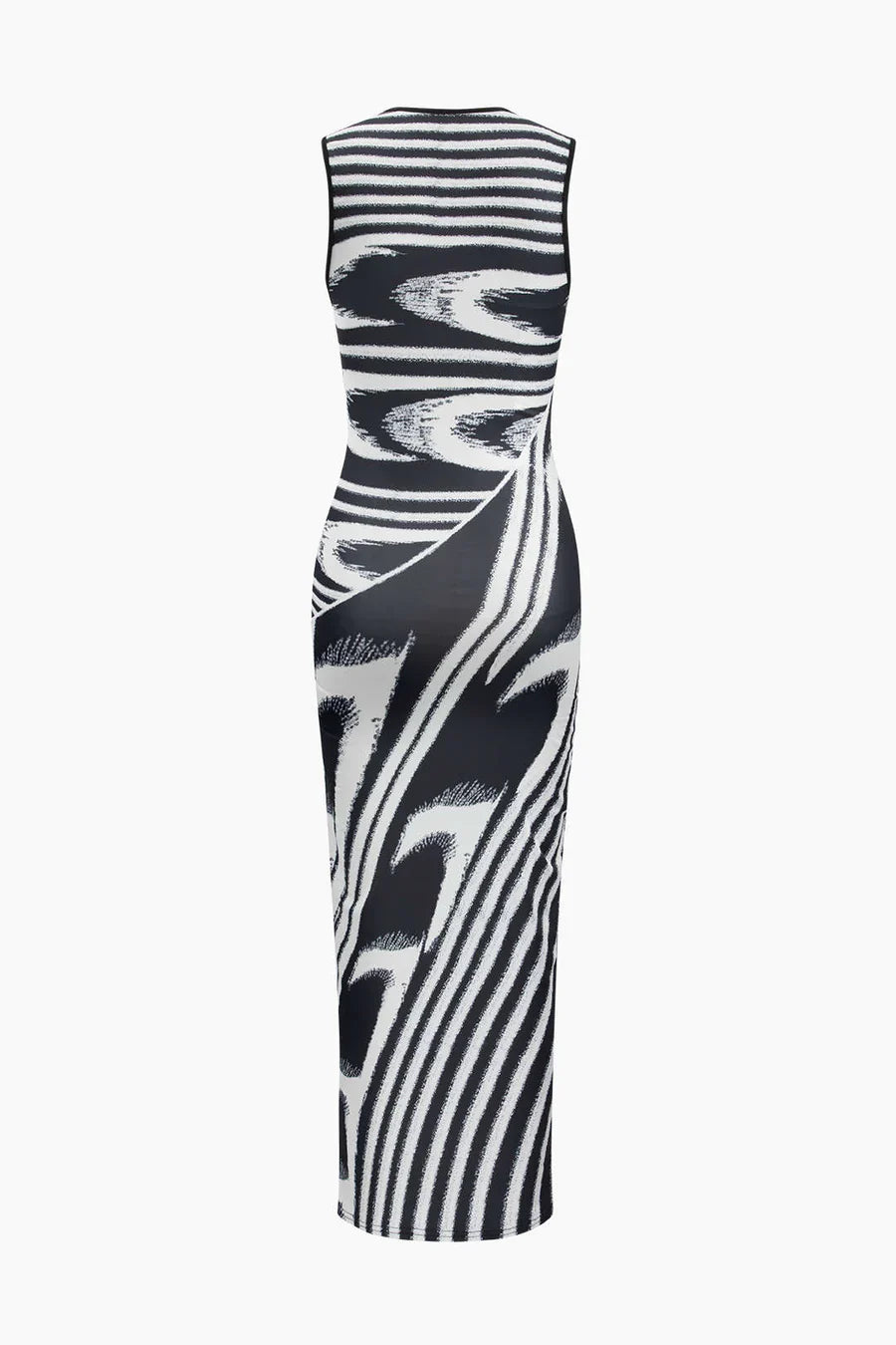 For a dress that is both stylish and comfortable, look no further than our Sleeveless Black and White Stripe Abstract Dress! Made with a blend of high-quality polyester and spandex material, this dress is sure to keep you feeling great all day long. The classic color block design, combined with the trendy round neck style, makes for a stunning and flattering look. Plus, with a floor-length design, you'll be sure to turn heads at any party or club event. Trust us, this dress is a must-have for any fashion-forward wardrobe!