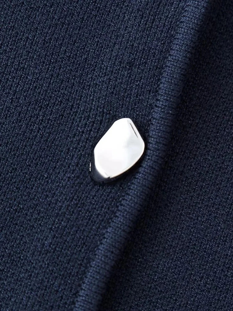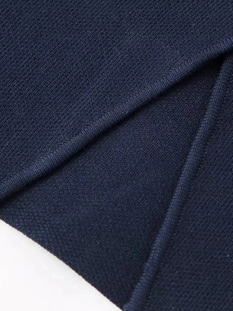 Experience great comfort and style with our Chic Sleeveless Knitted Navy Vest Top! This top features medium stretch elastic fabric, regular sleeve style, and a fashionable solid pattern. The slim fit and short sleeve length make it perfect for casual wear during the Spring/Summer. Made with high-quality polyester, it offers a standard thickness and is adorned with a single-breasted closure. Say no to bulky clothing with this short and stylish must-have piece.
