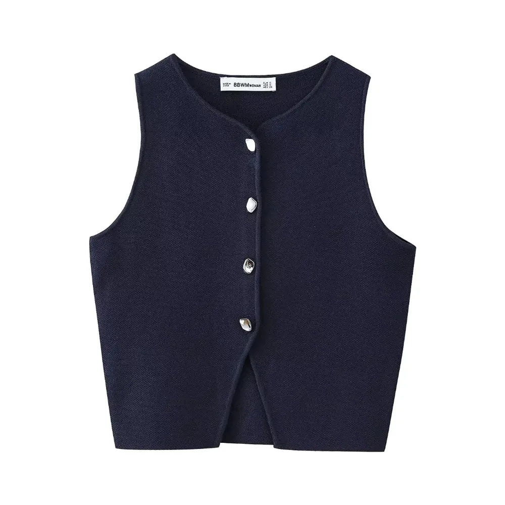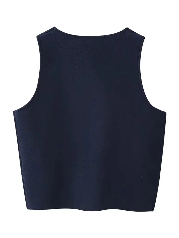 Stephanie Martin June 5, 2024Verified BuyerSuper cuteI wore this to a music festival and it was super breathable comfortable and stretchy. 100% would Recommend!Chic Sleeveless Knitted Navy Vest Top Was this helpful? 0 0