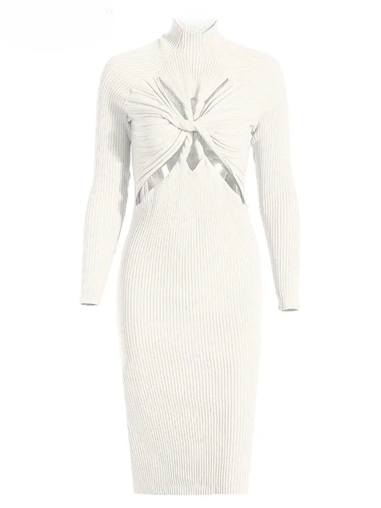 This Knit Midi twisted tie front cut out long sleeve gives a comfortable feel, with a comfy midi dress takes the classic knit to new heights with its standout twisted tie front and stylish cutouts. Long sleeve perfection that's too good to pass up!