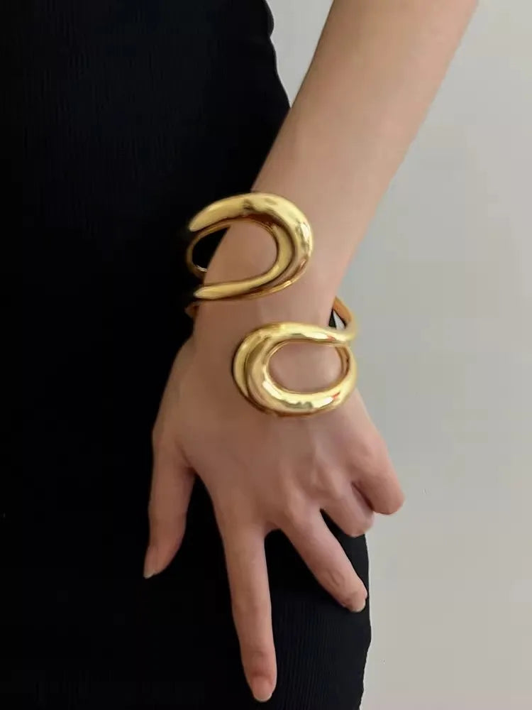 Be bold and embrace the risk with this fashion-forward gender-neutral metal cuff bracelet! Show off your street style with this edgy open bangle, plated in a striking gold-color and featuring a trendy geometric design. Perfect for any occasion, this bracelet also functions as a mood tracker, adding an element of adventure to your jewelry collection. Compatible with all, make a statement and add some punk flair to
