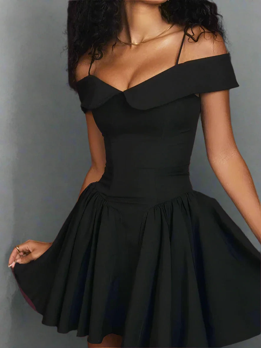 Kaylah M. Rivera February 10, 2023Verified BuyerCute, simple, flattering!Wore this for a date night with my boyfriend and it was the perfect little black dress for those colder nights. It is form fitting and hugs your body just right. I paired it with a pair of black booties and gold jewelry, perfect and simple. For reference I am 5’1, 130 pounds and the dress hit an inch or so above my knee. Also not see through.Elegant Off-shoulder A Line Pleated Mini Dress Was this helpful? 0 0