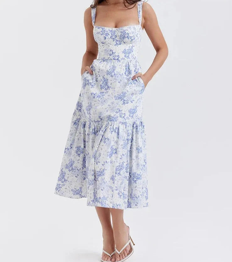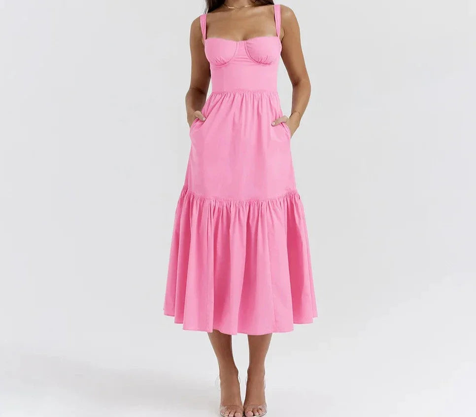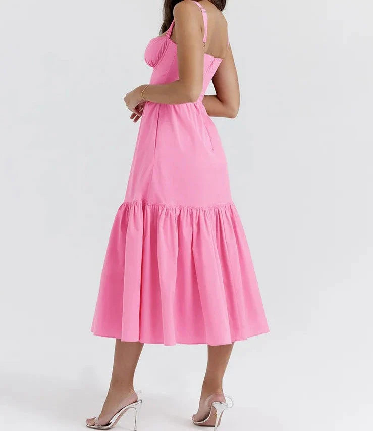Elegant Spaghetti Strap Backless A-line Midi Dress