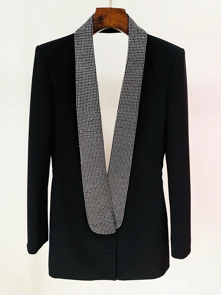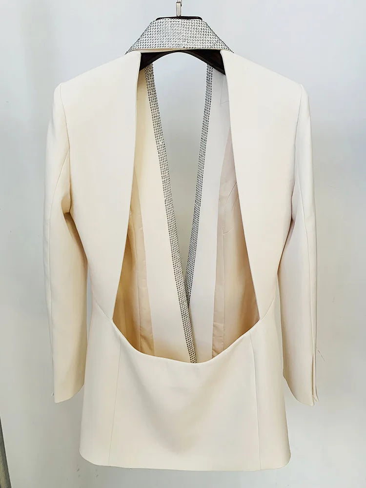 Runway Long Sleeve Crystal Diamanté Backless Blazer