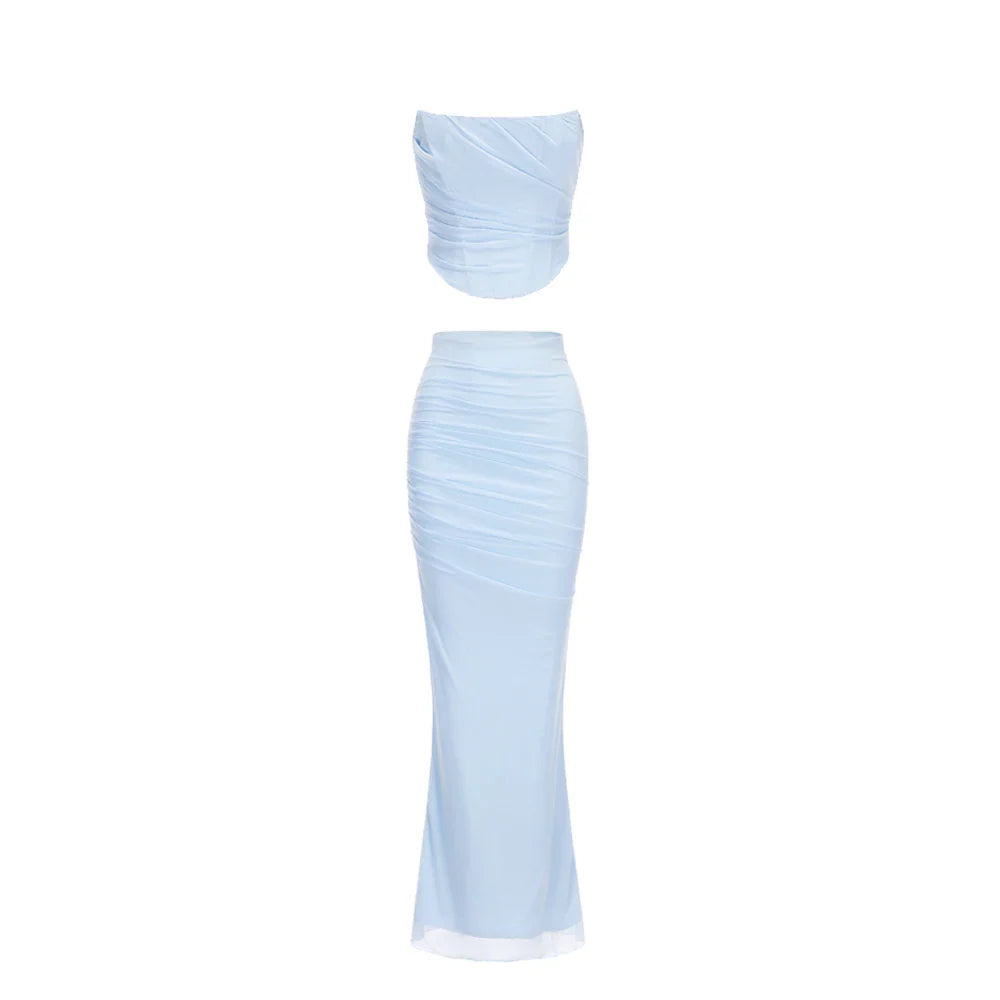 Luxe Strapless Bodycon Corset Style Top and Maxi Skirt Set
