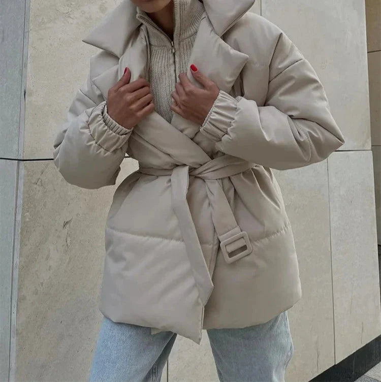 Experience unparalleled warmth and style with our Winter Lace-Up Pocket Parkas Coat. This elegant and sophisticated coat features a V-neck, loose fit, and long sleeves, all accentuated by a high waist bandage and exquisite belt details. Crafted from premium woolen fabric and lined with plush polyester fiber, this coat is both stylish and functional. The solid color and delicate decorations add a touch of sophistication and class to this must-have piece. Perfect for autumn and winter, this coat is sure to become a staple in your wardrobe.