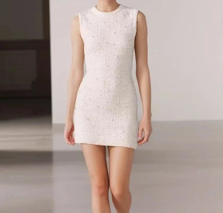 Vintage Chic White Sleeveless Pullover Mini Dress