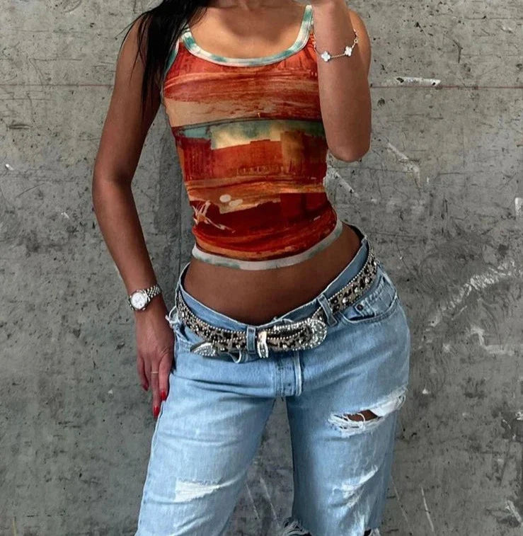 Gradient Sheer Print Tank Top