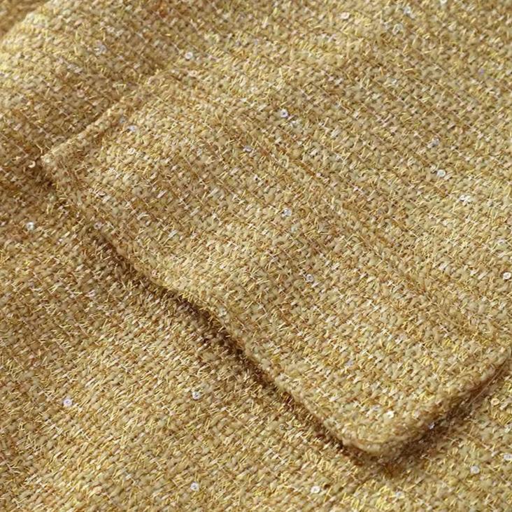 The Glitter Long Sleeve Jacket is adorned with stylish button and pocket decorations, exuding sophistication and exclusivity. Crafted with premium polyester material, this style coat is perfect for the autumn and winter seasons. Its solid pattern and single breasted closure add to its elegant design. With a full sleeve length and regular fit, this jacket is perfect for anyone looking to make a fashion statement. Its round neck collar and regular sleeve style add a touch of refinement to this must-have outerwear piece.