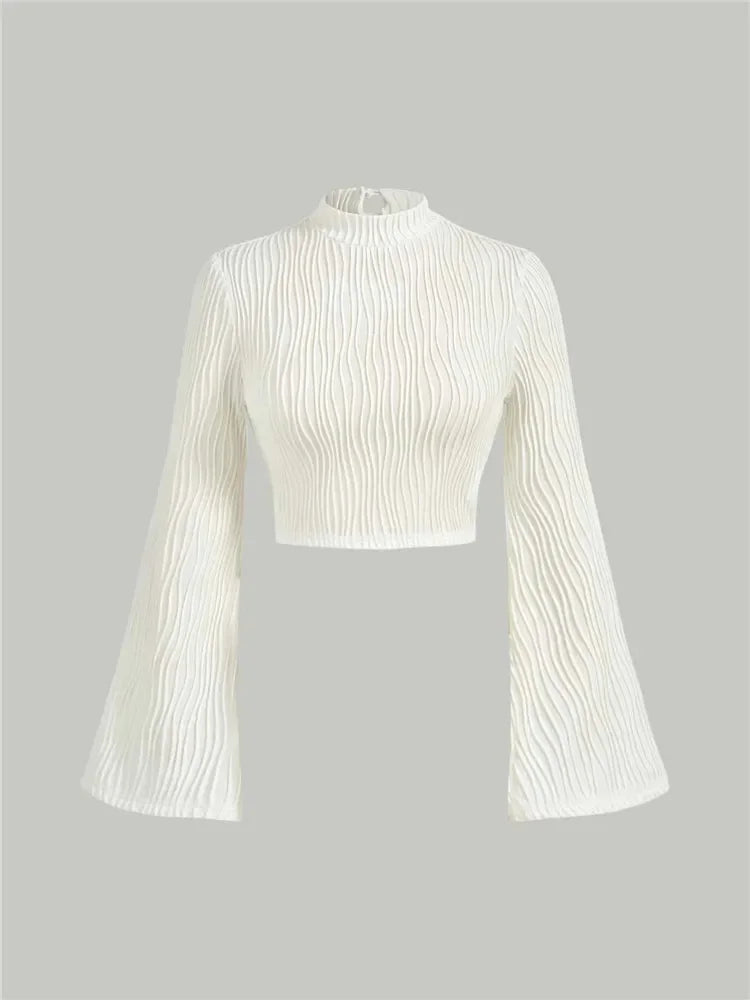 Textured Flare Long Sleeve Crop Top