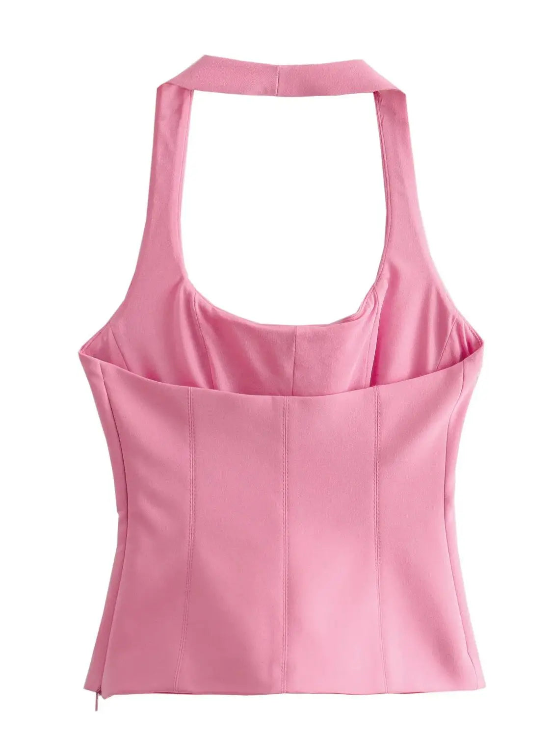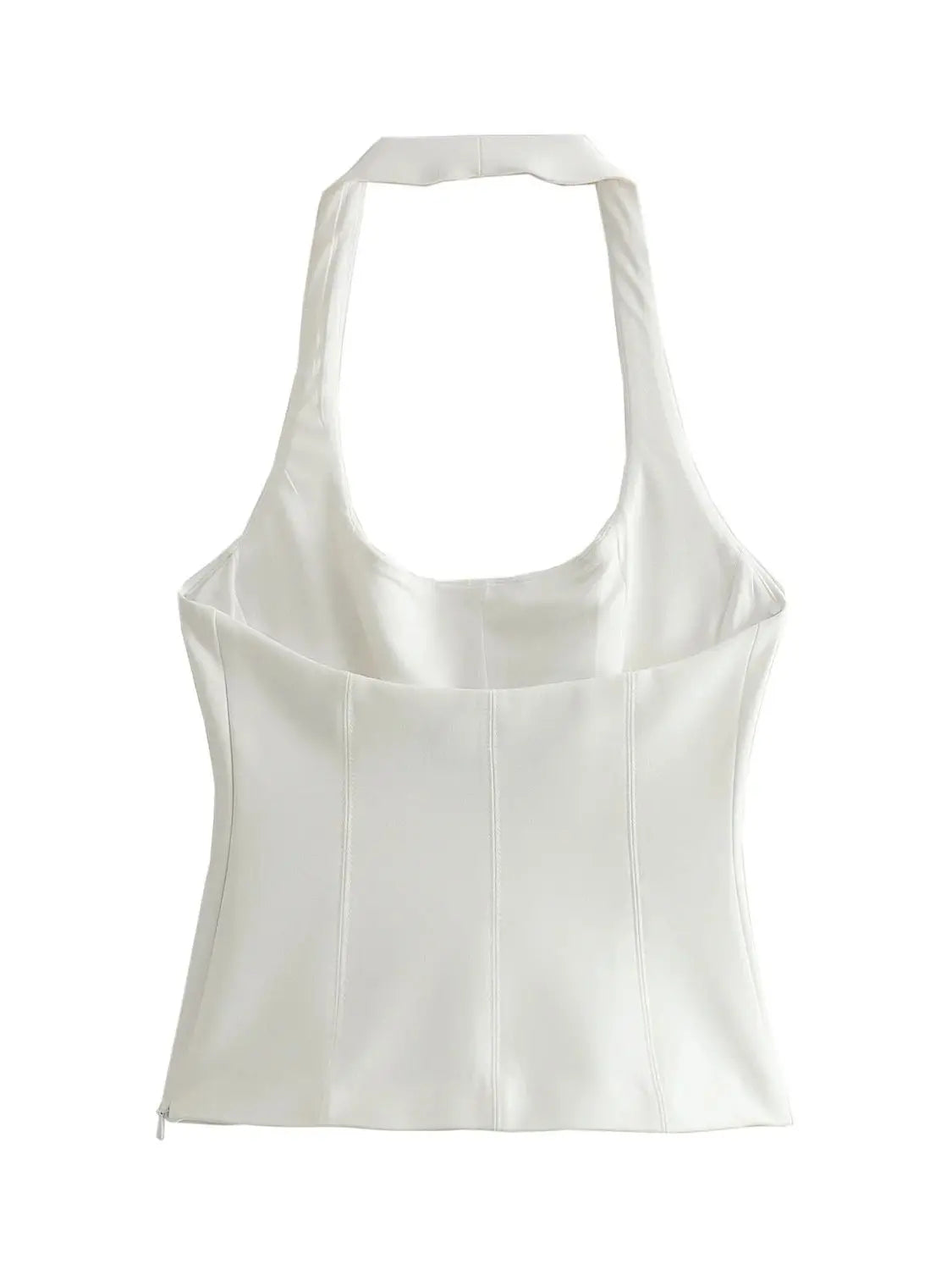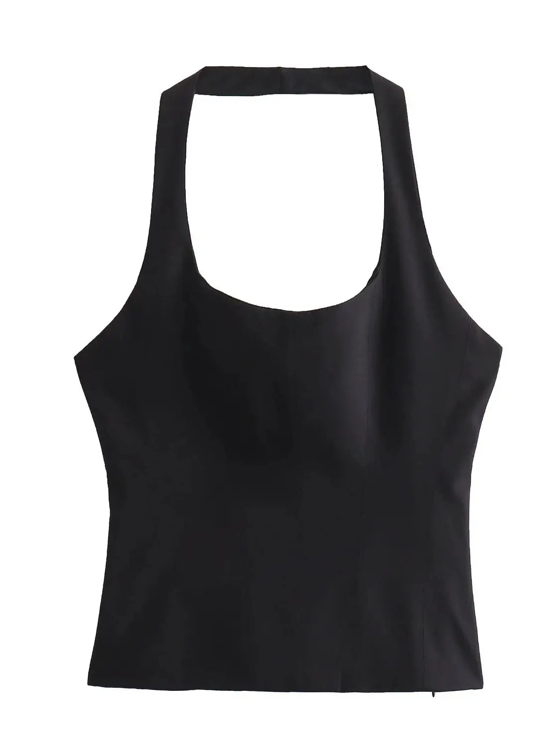 Be bold and daring with this chic halteneck top designed with non-stretch elasticity for a perfect fit. Show off your fashion sense with this open back top featuring a side zipper and no decorations. Bring out your adventurous side with this versatile top that is perfect for any occasion.