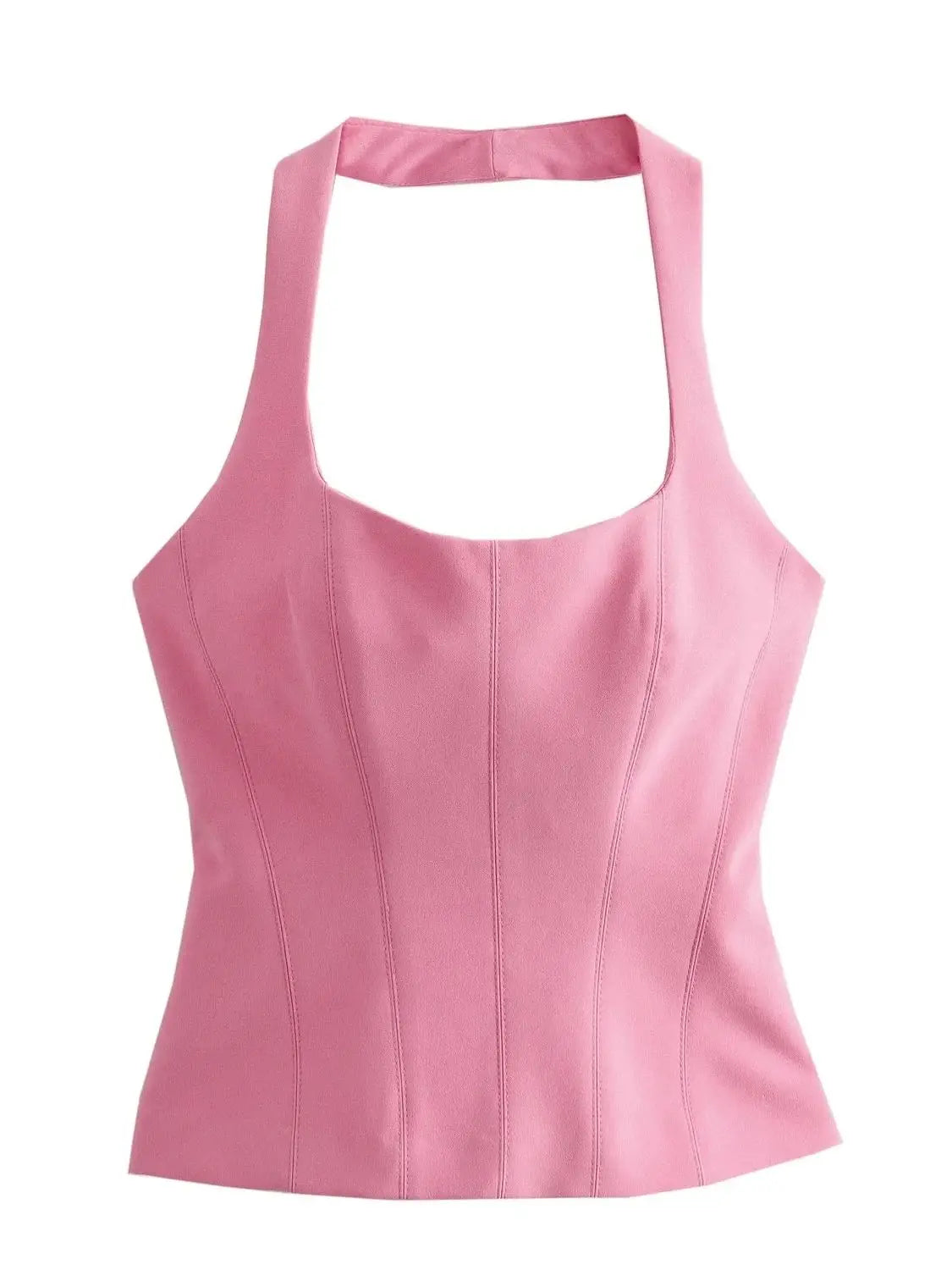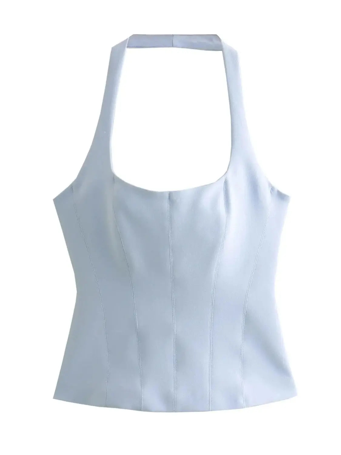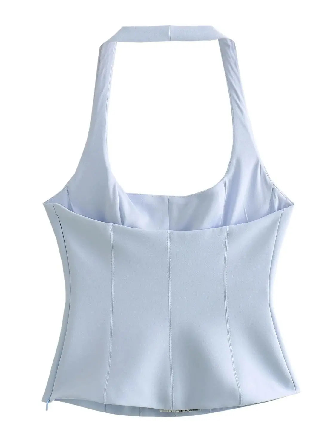 Be bold and daring with this chic halteneck top designed with non-stretch elasticity for a perfect fit. Show off your fashion sense with this open back top featuring a side zipper and no decorations. Bring out your adventurous side with this versatile top that is perfect for any occasion.