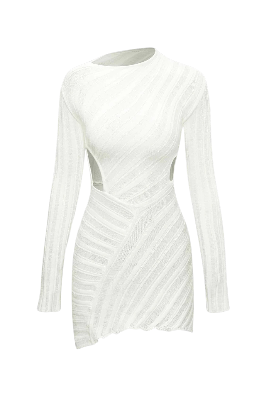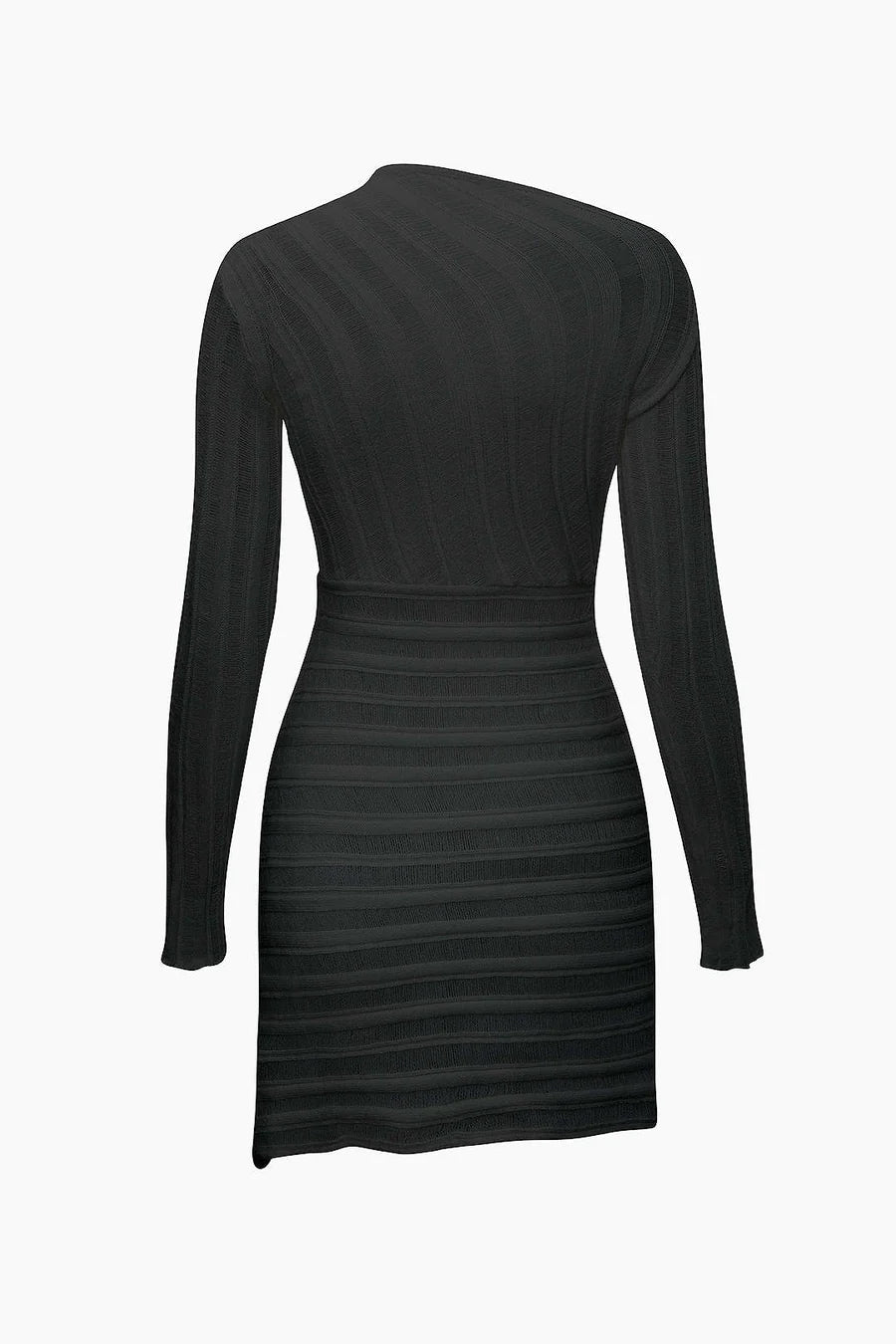 Asymmetric Cut Out Long Sleeve Knitted Mini BodyconDress